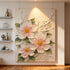 • Soft pink-and-white floral elements sculpted with rich palette-knife textures for an elegant impressionistic look.