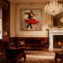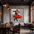Created in an expressive modern impressionist style, blending vivid movement and emotion through bold red and neutral tones.