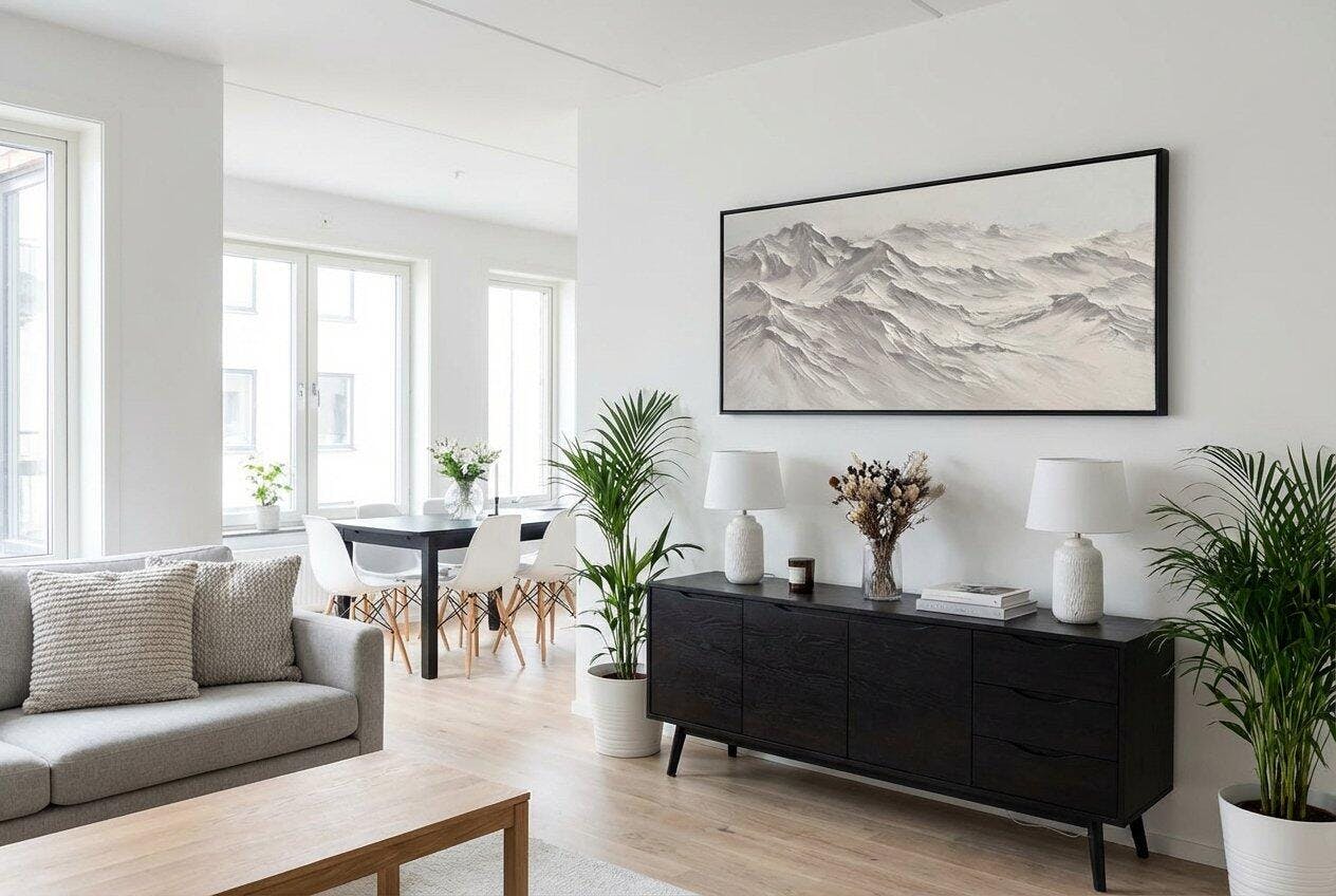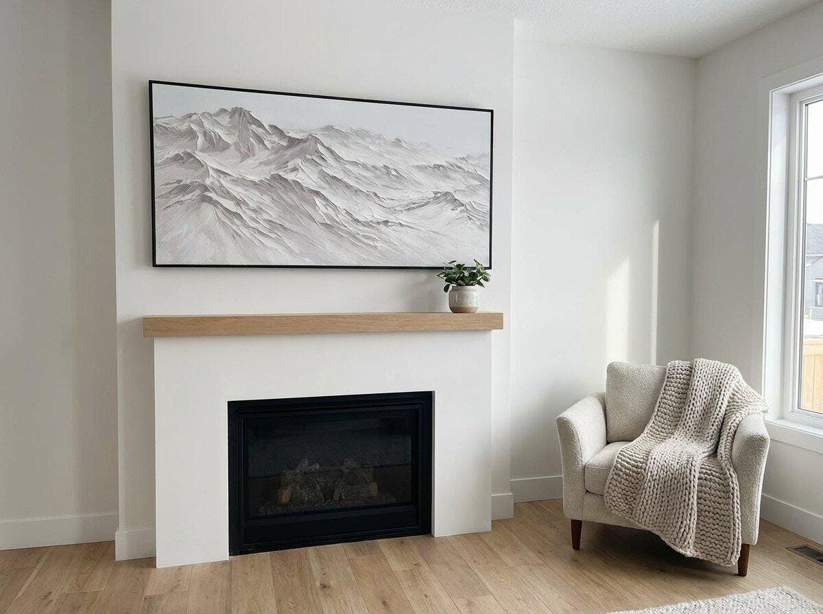 The use of textured layers creates depth and visual impact, capturing the grandeur of the mountains.