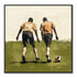 Modern figurative expression capturing the essence of youth and companionship through two figures on a green field.