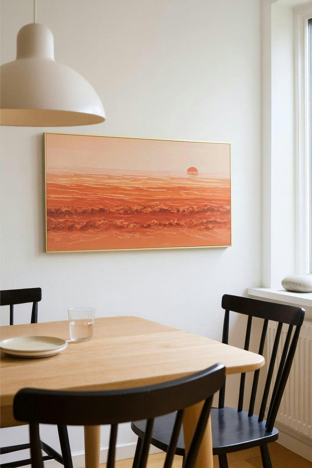 Sunrise Harmony – Abstract Texture Landscape in Warm Orange Tones, Sunset Over Waves Extra Large Handmade paintings