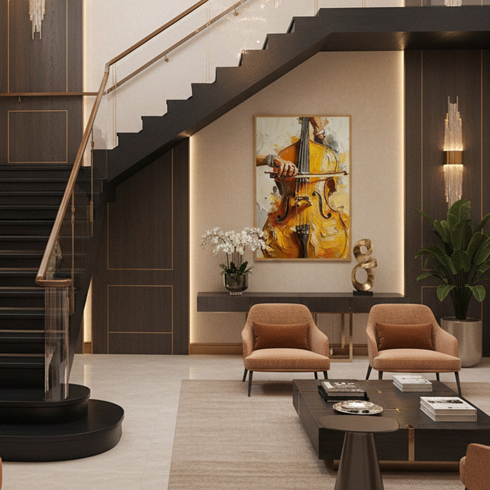 100% hand-painted, each piece uniquely captures the harmony between art and melody — perfect wall art for living rooms, music studios, or creative interiors.