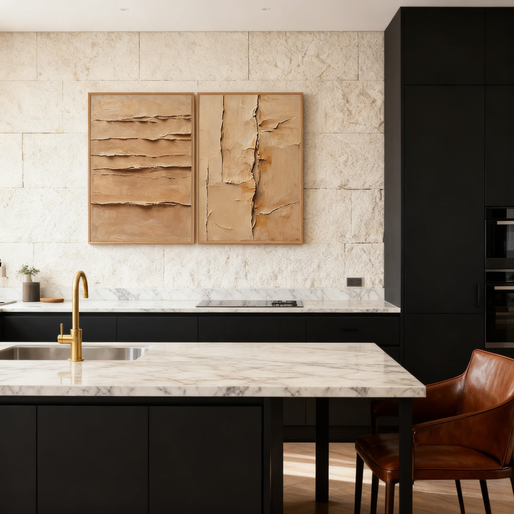 Desert Layer Texture Theme Painting – Modern Abstract Style Handmade Texture Wall Art (Set of 2)