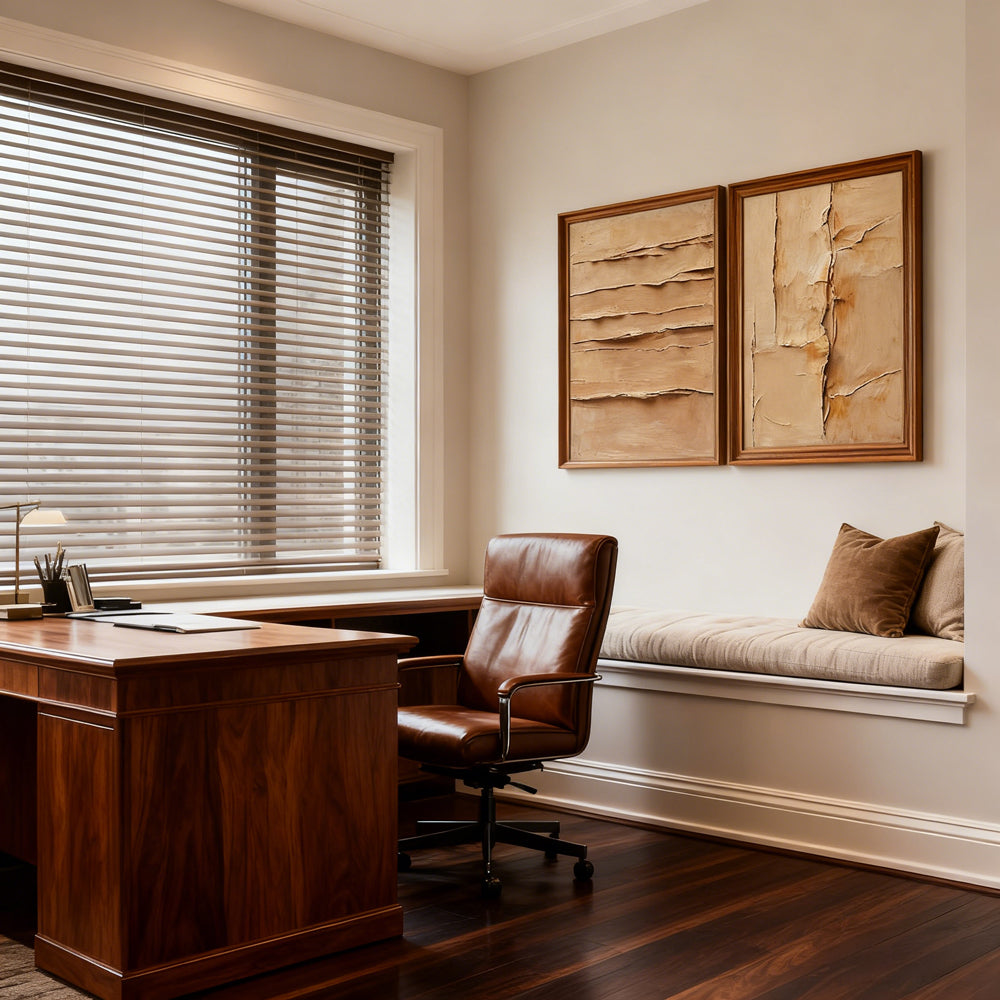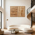 Features natural, sediment-like layered textures in warm desert tones, expressing modern abstract minimalism and organic structure.