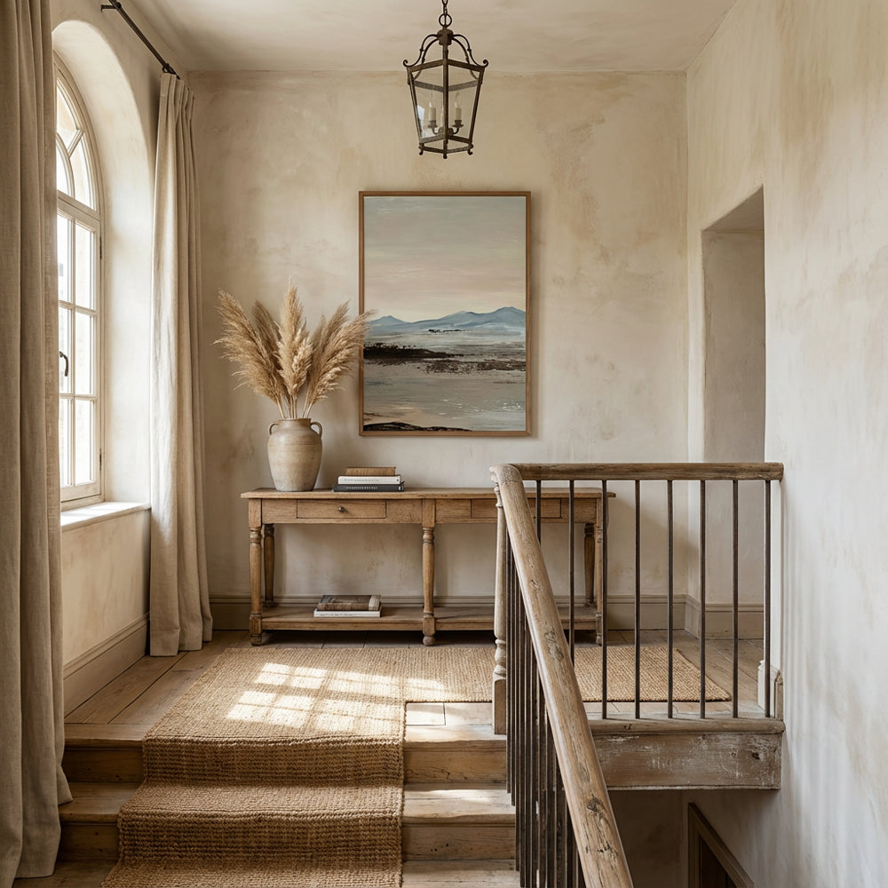 • Hand-painted texture creates natural depth and a calming atmospheric effect