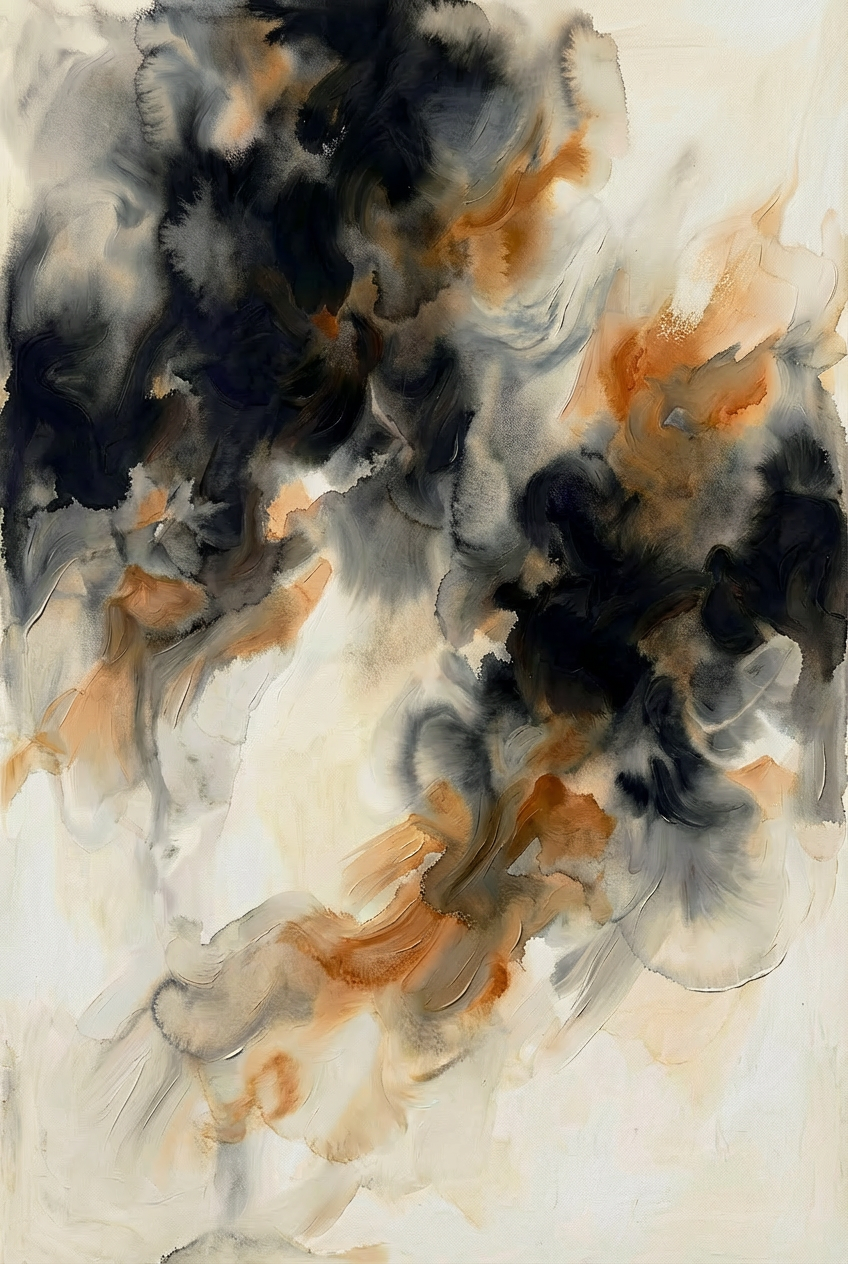 This artwork belongs to a modern abstract expressionist school, blending the freedom of ink-wash aesthetics with oil painting techniques. Soft blacks, smoky grays, warm earth tones, and subtle whites dissolve and merge across the canvas, creating a dreamlike sense of motion. The layered brushwork feels spontaneous yet balanced, inviting quiet reflection and emotional resonance. Entirely hand-painted, each transition and texture forms naturally, making every piece truly one of a kind. This wall art brings an ethereal, refined atmosphere to modern interiors, offering both visual calm and artistic depth.