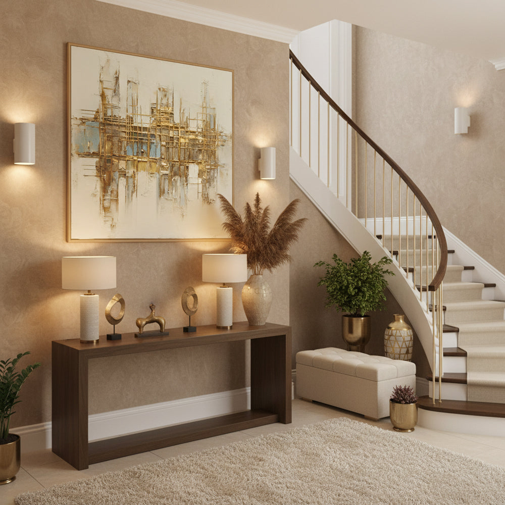 Golden Grid Structure Theme Painting – Modern Abstract Style Handmade Texture Wall Art