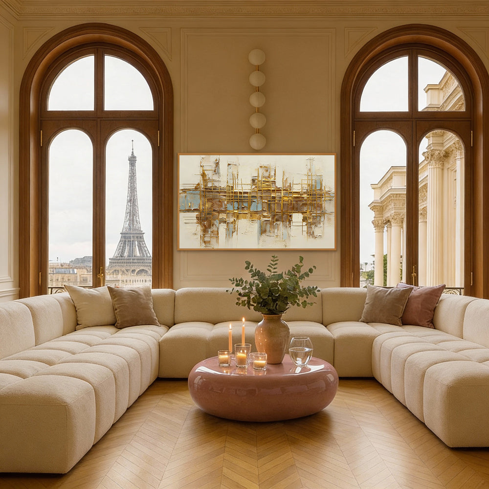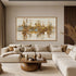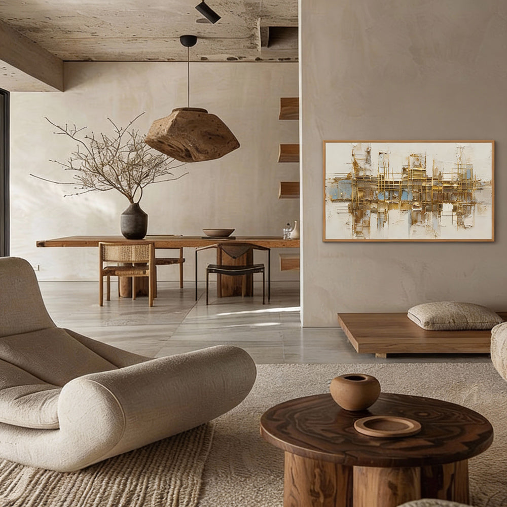 Golden Grid Structure Theme Painting – Modern Abstract Style Handmade Texture Wall Art-Landscape Orientation