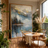 This artwork captures a serene mountain lake at dawn, where golden sunlight grazes the peaks and soft mist blends into the sky. The impressionist palette-knife textures create dynamic strokes and layered depth, enhancing the reflection of trees and water. As a one-of-a-kind hand-painted oil piece, it brings tranquil wilderness charm and refined artistic presence to any interior.