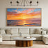 • This contemporary impressionist oil painting captures the tranquil beauty of a sunset over the ocean, where golden light gently dances across the water’s surface. Bold yet harmonious brushstrokes create a glowing horizon, blending warm oranges, soft pinks, and deep blues into a serene visual rhythm. Entirely hand-painted, the textured surface gives the artwork a tactile richness that enhances its emotional presence. Designed as a one-of-a-kind wall art piece, it brings warmth, relaxation, and refined elegance to any modern interior.