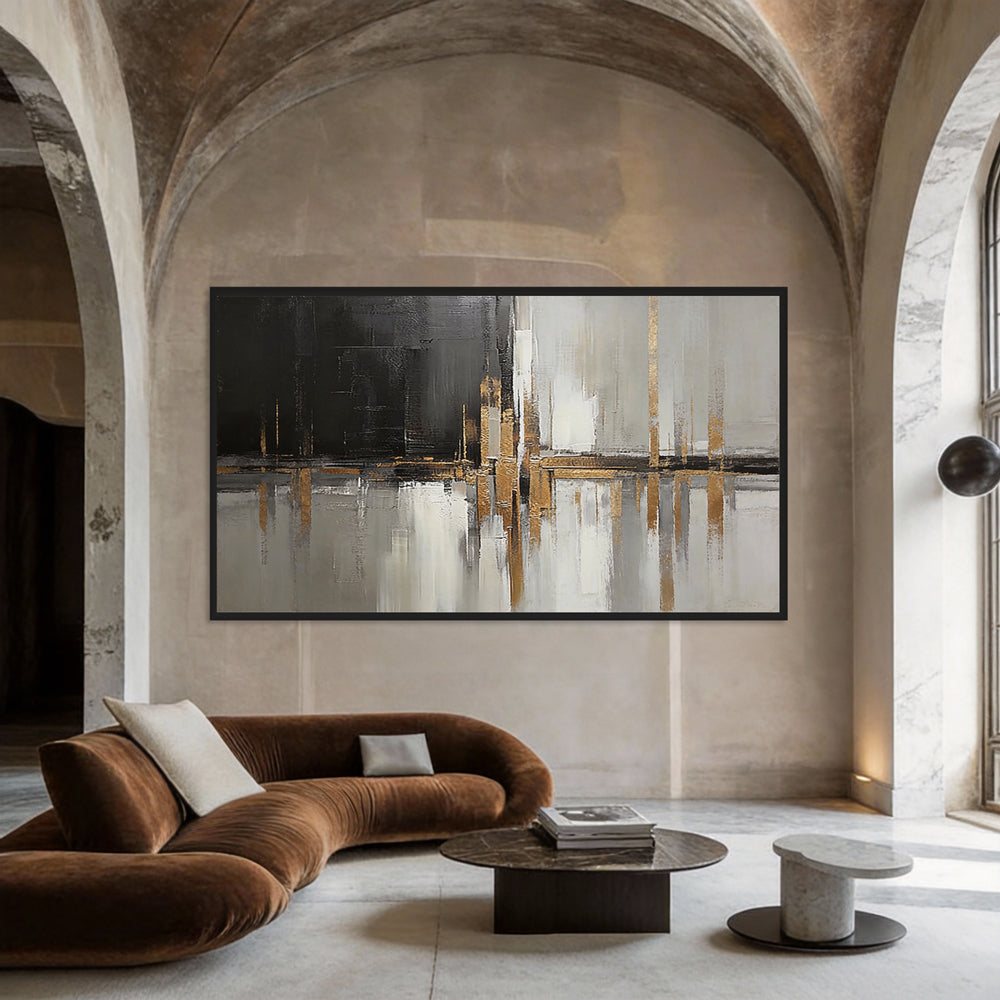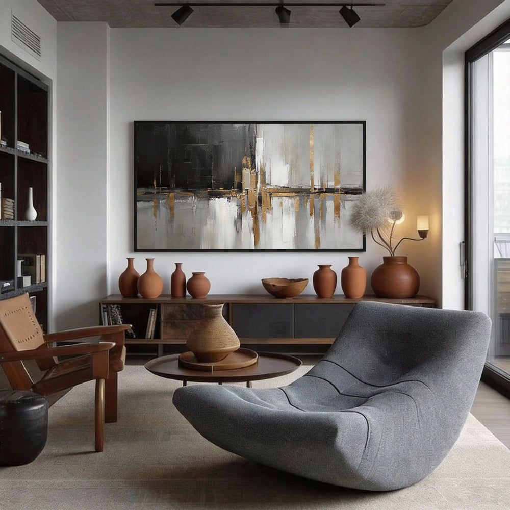 - Modern Abstract Design: This piece combines dynamic contrasts of black, white, and gold to evoke sophistication, ideal for contemporary spaces.