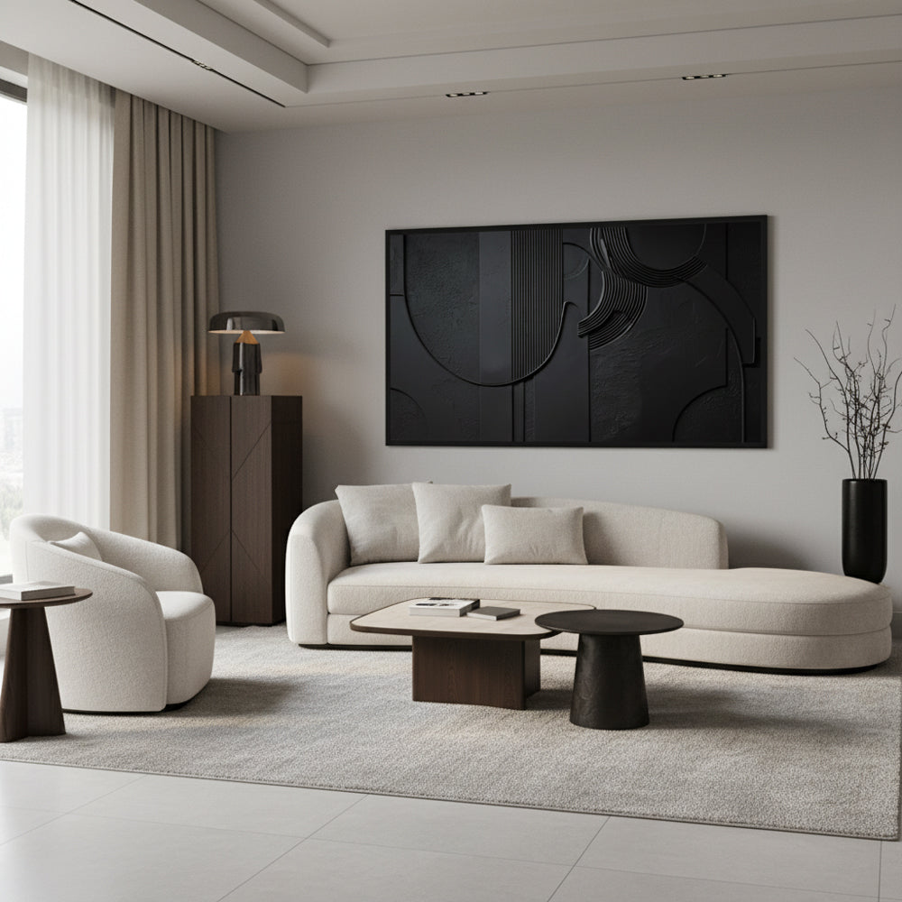 Aiden O’Connor’s work explores the tension between raw materiality and refined expression. His paintings often combine deep, textured surfaces with striking metallic contrasts, evoking both geological formations and abstract landscapes. The deliberate layering of black tones with gold elements creates a dialogue between darkness and illumination, strength and fragility. Rooted in minimalism yet charged with emotion, O’Connor’s art invites viewers to contemplate resilience, transformation, and the quiet power of material surfaces.