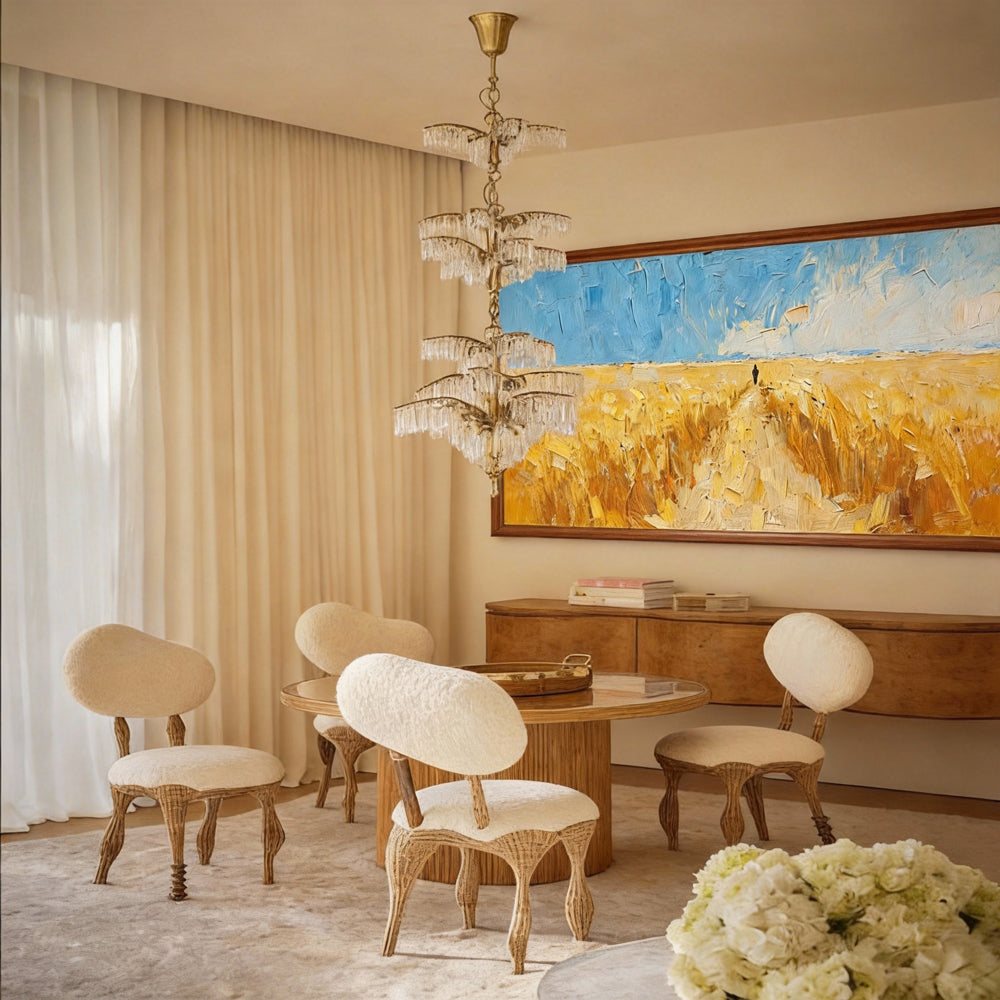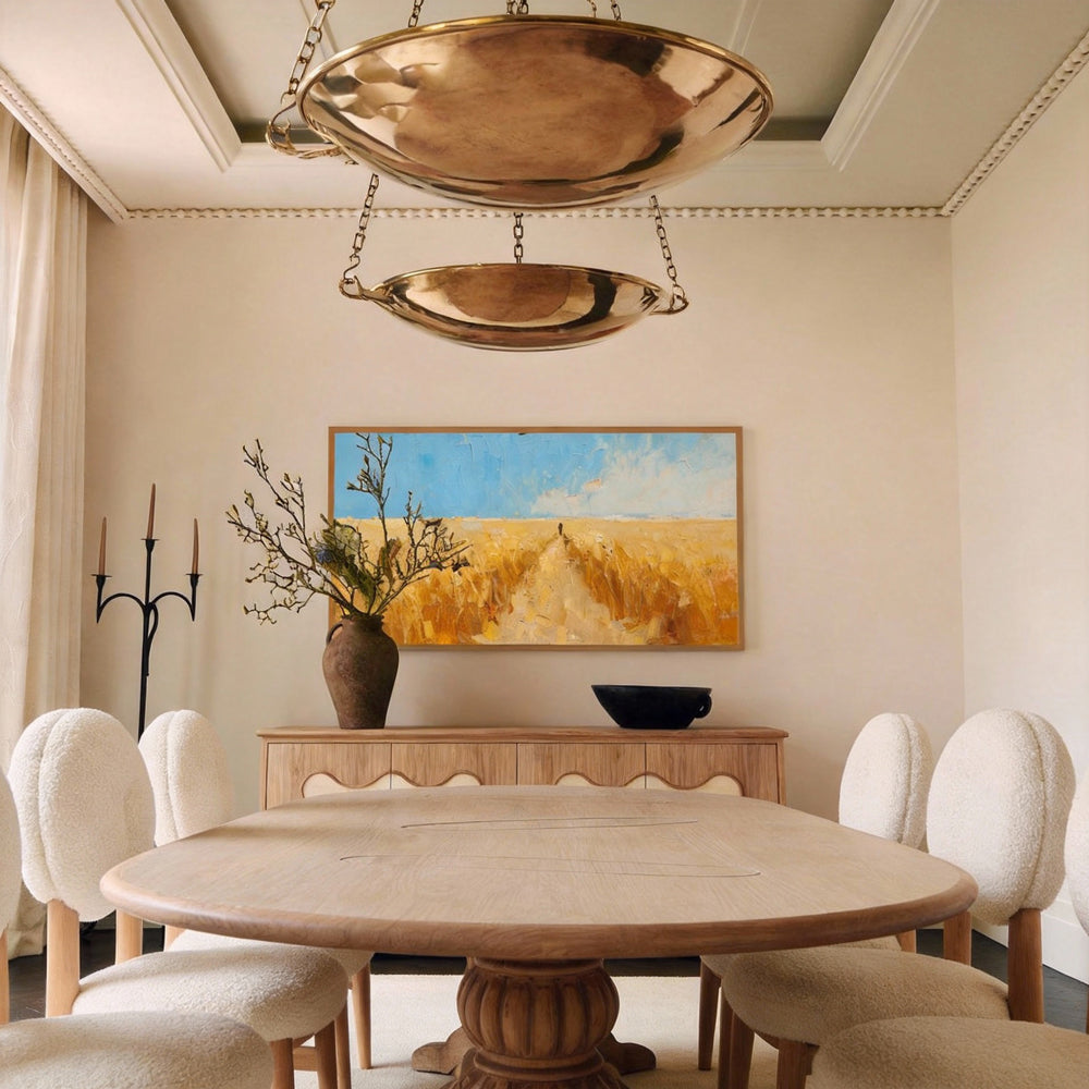 A handmade, one-of-a-kind oil wall art piece that captures nature’s grandeur and human introspection, ideal for modern living or office spaces.