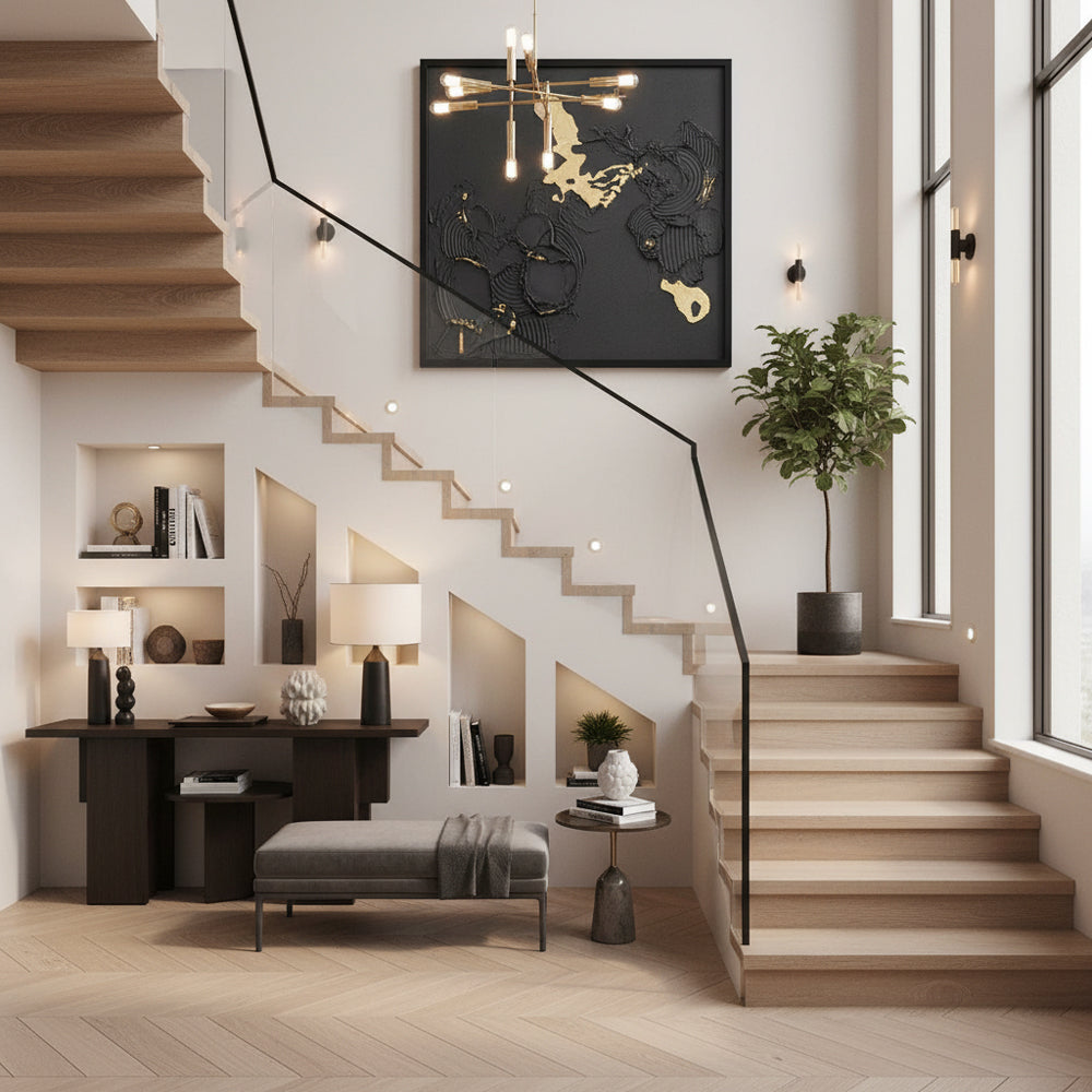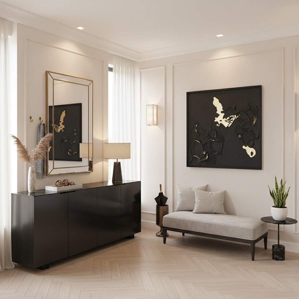 Handmade Abstract Wall Art – Black Textured Painting with Gold Accents