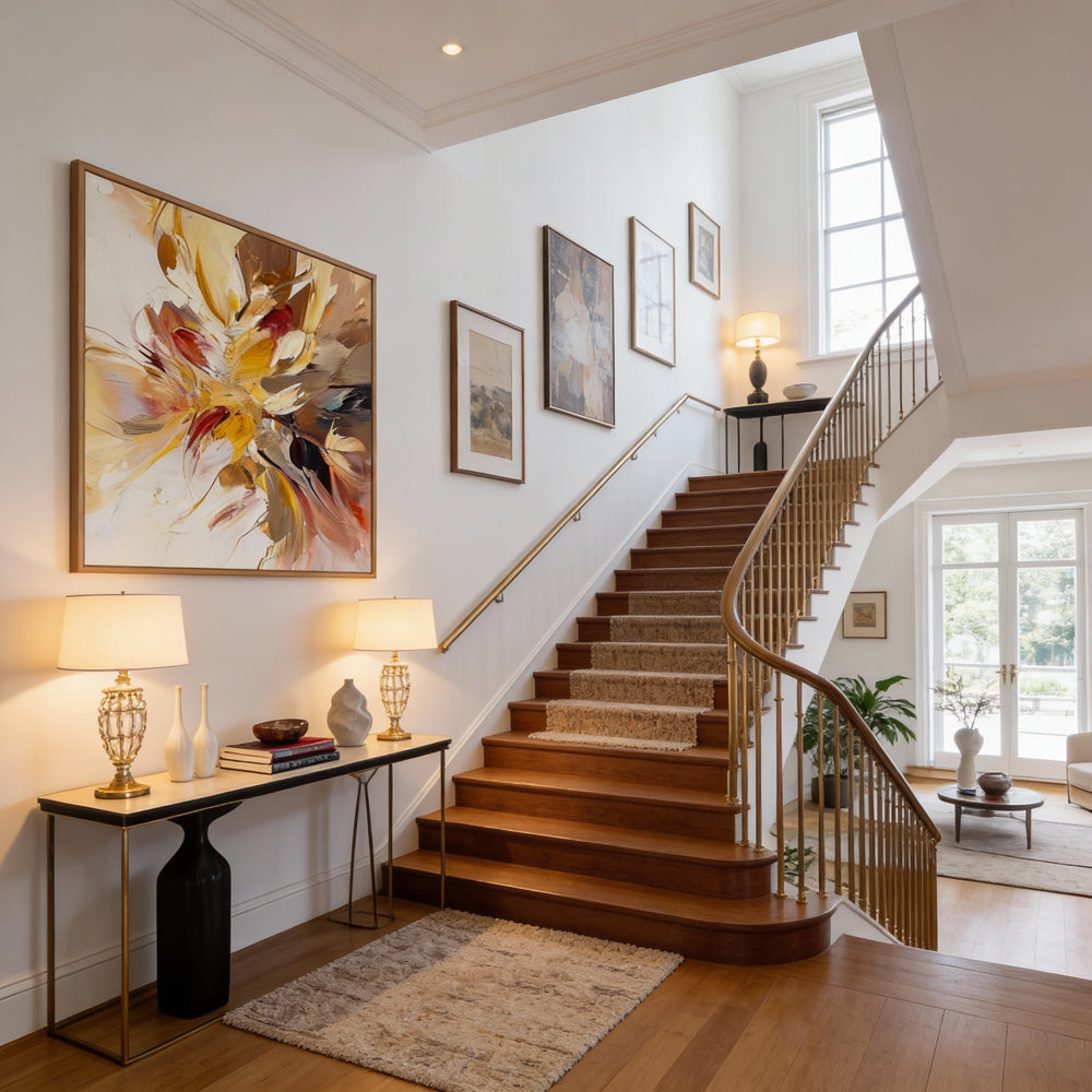 Fully hand-painted, each artwork is one of a kind, offering warmth, elegance, and a luxurious visual statement for any interior.