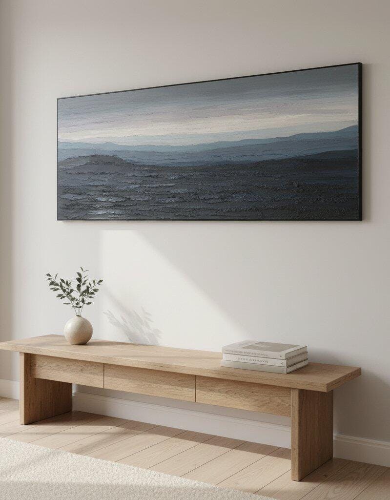 Silent Ridge – Modern Abstract Landscape Texture Painting, Handmade Oil Wall Art for Contemporary Interior Decoration