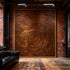 The painting features abstract spiral wooden - texture elements, creating a unique and immersive visual effect.