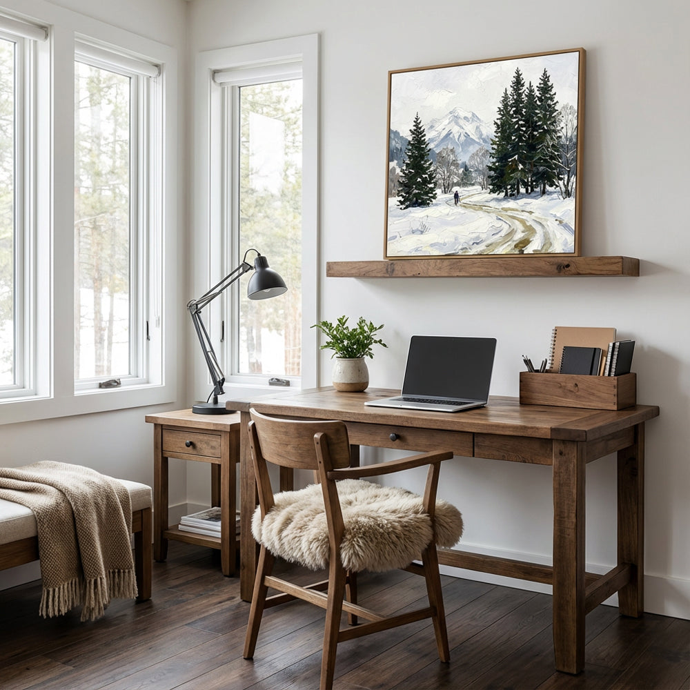 Winter Path Reflections – Impressionist Snowy Forest Landscape Oil-Style Artwork Handcrafted Painting